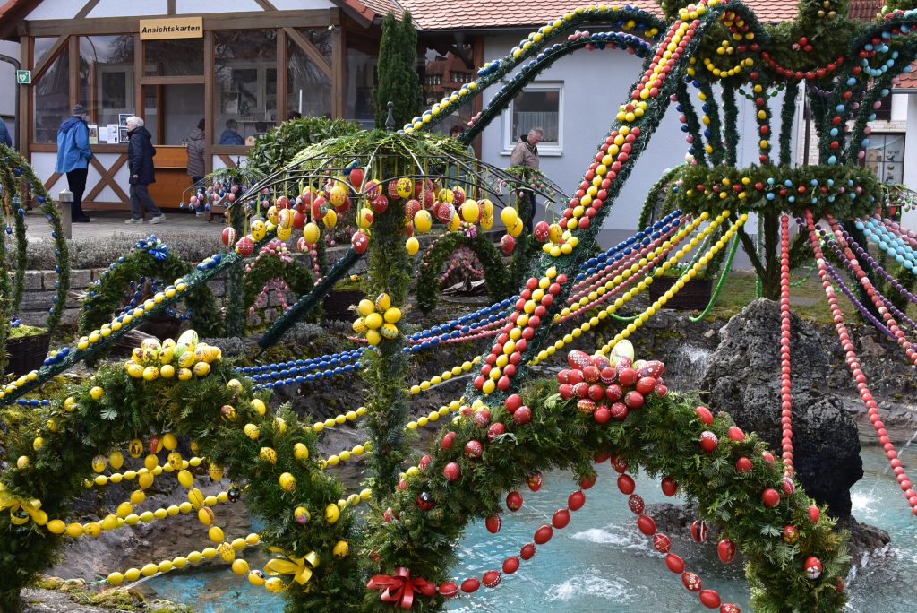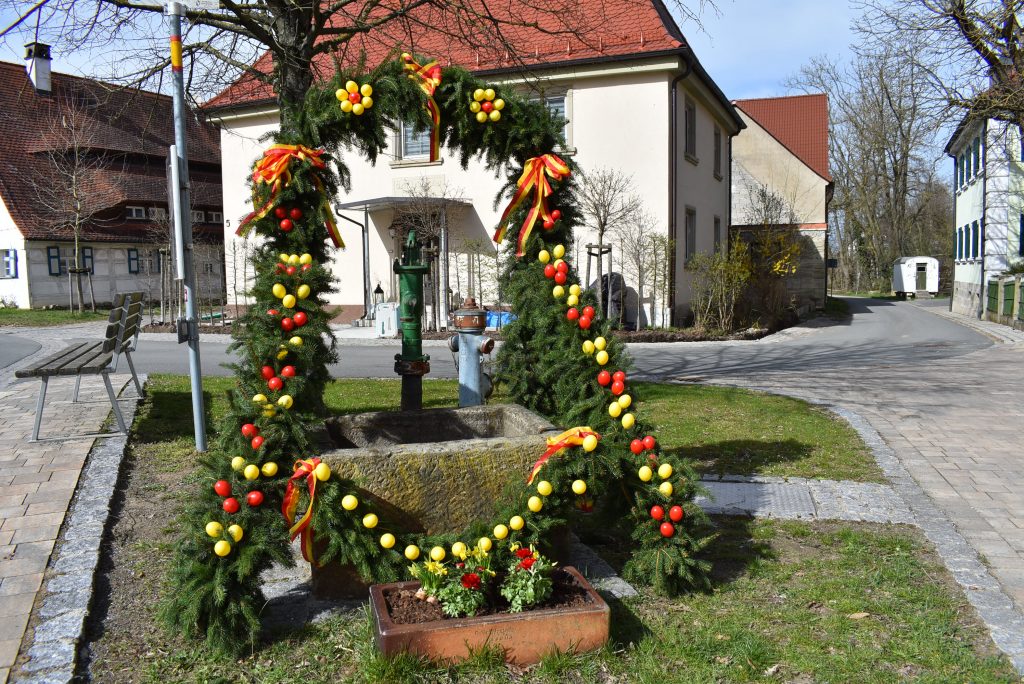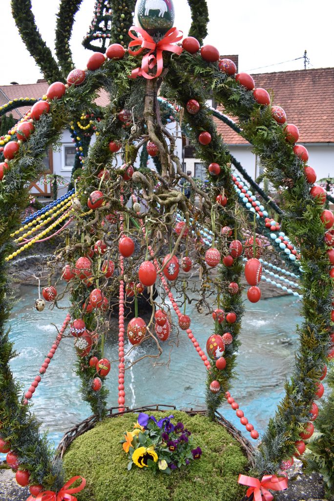 Der Osterbrunnen in Bieberbach hat Weltrekord erlangt, wegen der Vielzahl an Eiern. Aber nicht nur deshalb, auch wegen der ganzen Platzgestaltung ist der Bieberbacher Osterbrunnen ein Besuchermagnet.
