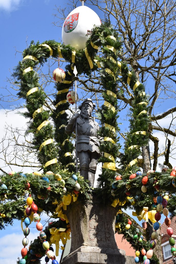 Hier der Ritter Wirnt Brunnen in Gräfenberg österlich geschmückt: