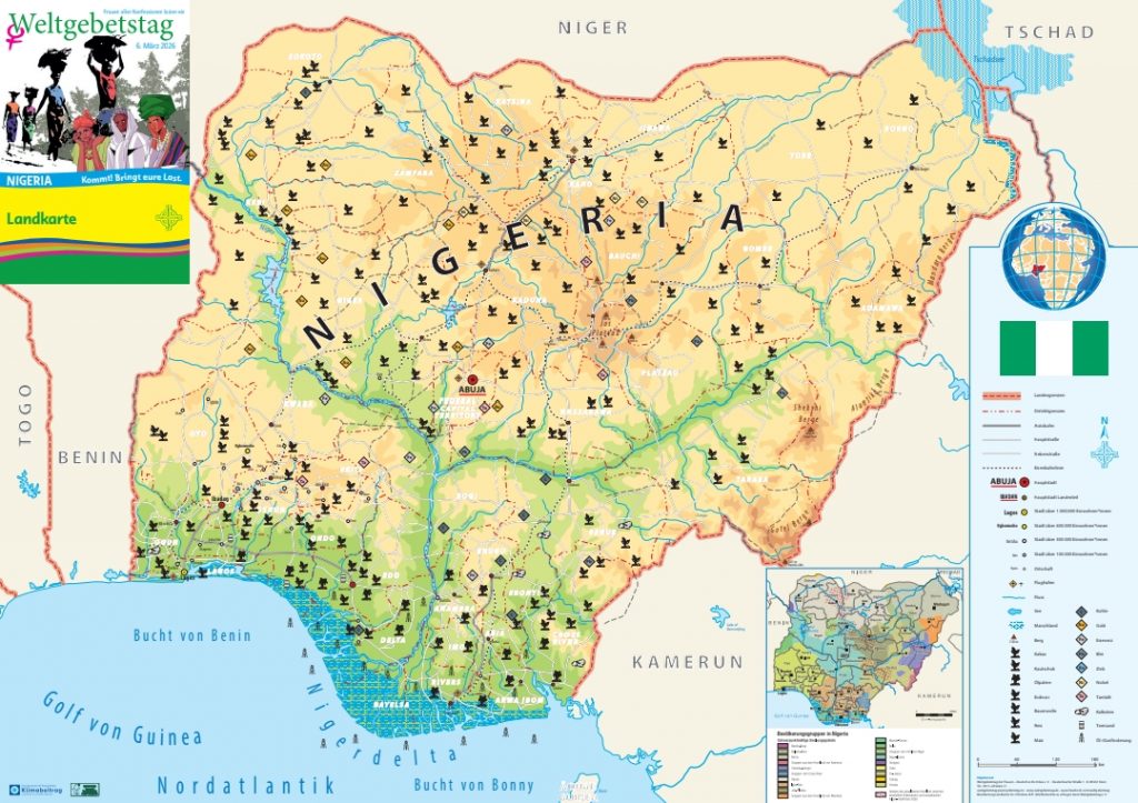 Nigeria ist ungefähr drei Mal so groß wie Deutschland und mit 230 Millionen Einwohnern das bevölkerungsreichste Land in Afrika. In Nigeria leben sehr viele arme Menschen, aber ebenfalls viele reiche Menschen. „Sie feiern Sektpartys“, erzählt Wittenberg. Im Nigerdelta gebe es tolle Plätze zum Baden. Für die Touristen. Nigeria ist reich an Bodenschätzen. „Es ist ein ölreiches Land“, sagt Wittenberg. Im Ölhandel ist Nigeria groß dabei. „Bis vor zwei Jahren hat Nigeria Öl exportiert“, erzählt die Koordinatorin des WGT. Dann kam Aliko Dangote, der Raffinerien baute, damit superreich wurde, aber Nigeria auch ein wenig unabhängiger machen wollte. Denn Nigeria hatte seit der Unabhängigkeit Rohöl exportiert und Kraftstoffe importiert. Nun ist es dem Land möglich, Kraftstoffe zu exportieren und somit nicht mehr von Importen abhängig zu sein. Doch Nigeria liefert nicht nur Öl und Gas, sondern auch seltene Erden, die für unser Computer und Laptops wichtig sind. Das ist die andere Seite des Landes, das von Armut und Reichtum geprägt ist.